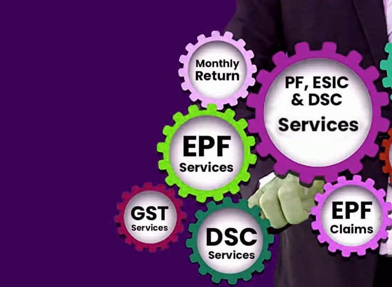 Expert assistance in ESI, PF, MSE, and GST compliance.