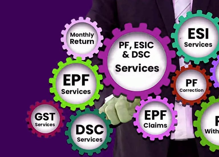 Expert assistance in ESI, PF, MSE, and GST compliance.